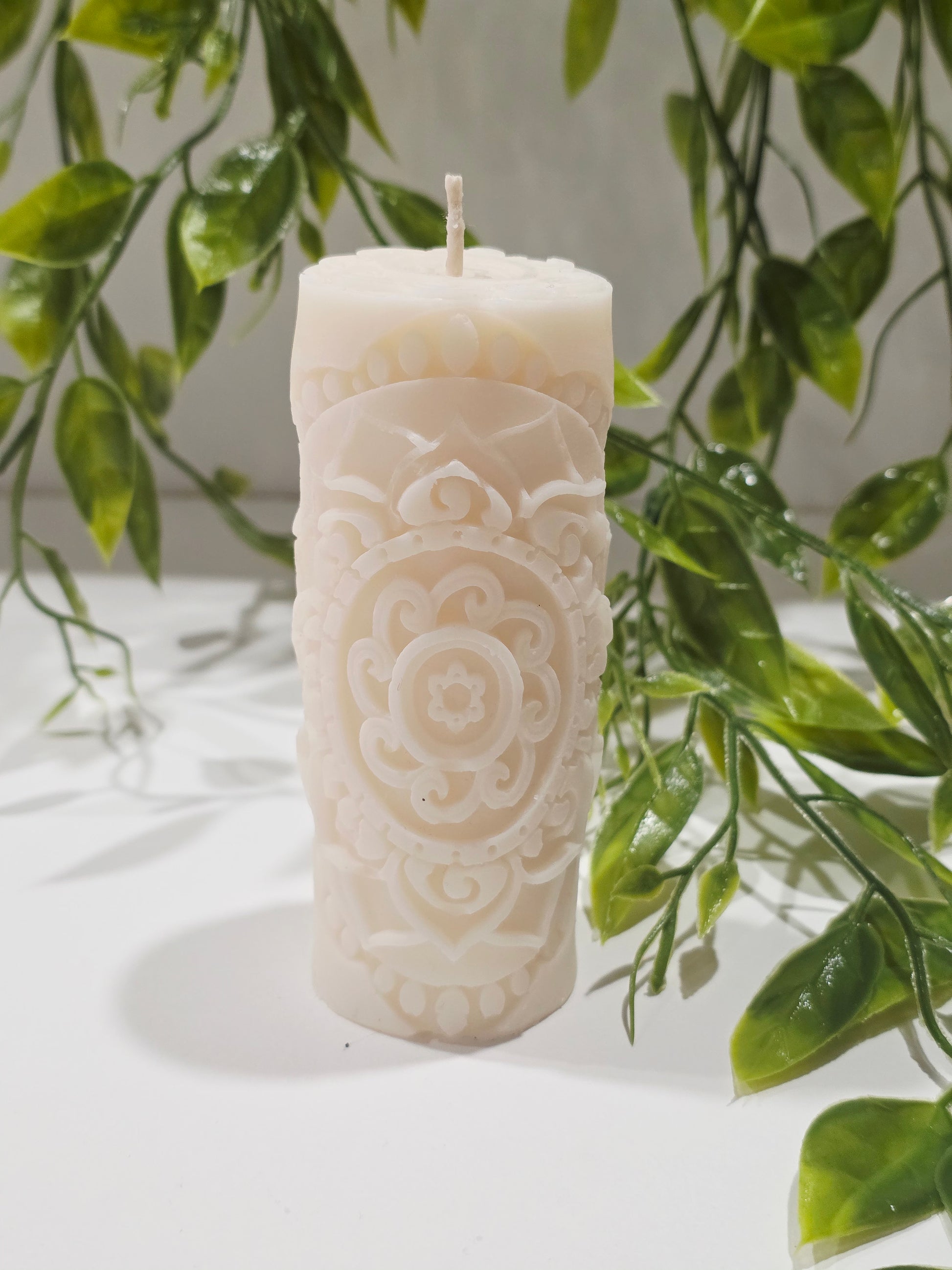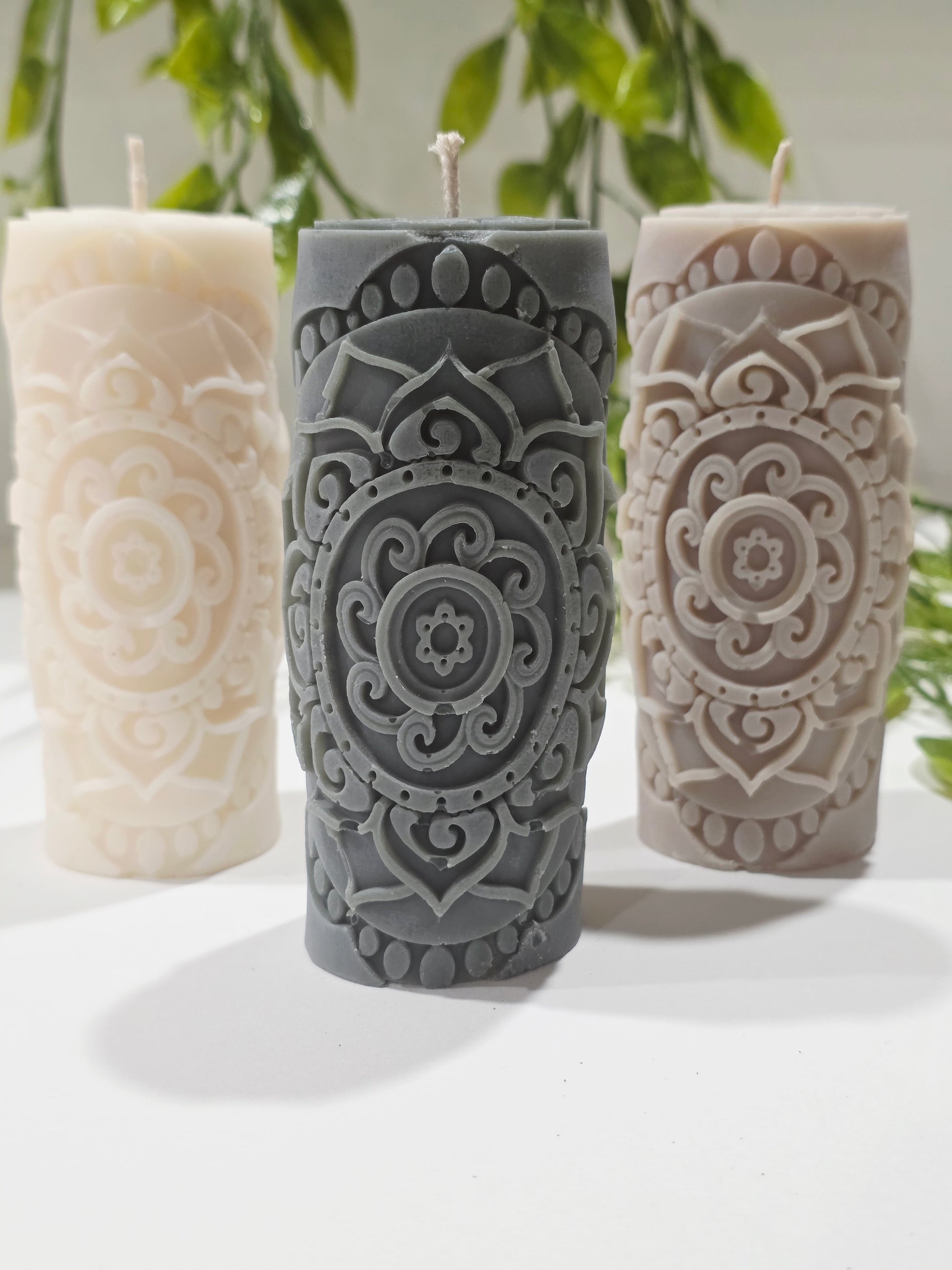Laissez-vous séduire par l’alliance parfaite de l’esthétique et du bien-être avec ces bougies moulées ornées d’un motif mandala délicatement travaillé. Disponibles en trois coloris raffinés — blanc, beige ou vert sauge — elles diffusent une fragrance orientale boisée et épicée .