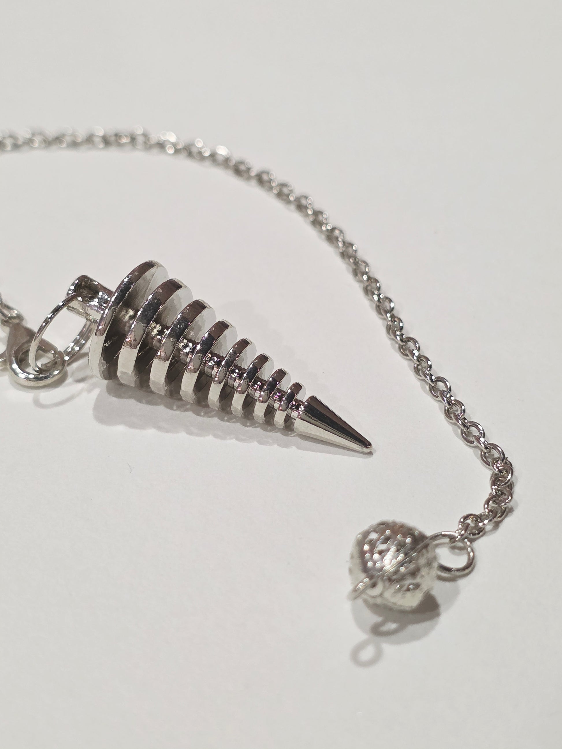 Ce pendule en métal argenté est un outil classique et accessible, parfait pour s’initier à la radiesthésie et à la divination.